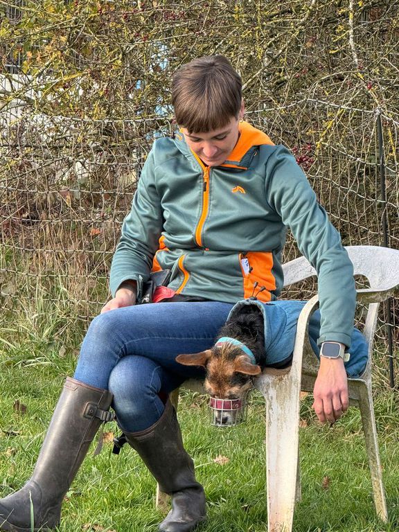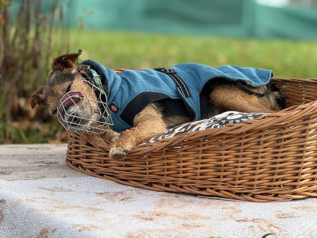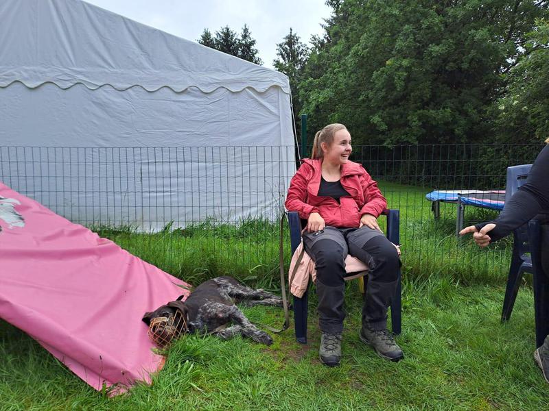 Struppi schläft auch im Auslauf ein, und das im Liegen, im Sitzen oder sogar auch im Stehen, natürlich immer mit einem halben blinzelnden Auge, wer da so vorbeikommt...