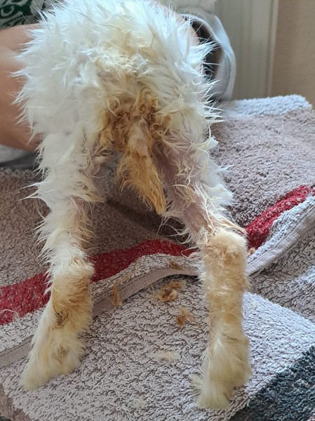 Ende September kam ein junges Kaninchen zu uns ins Tierheim. Die Kleine wurde draußen gefunden und war in keinem guten Zustand: Ihr Hinterteil und ihre Beine waren von Urin ganz gelb verfärbt.