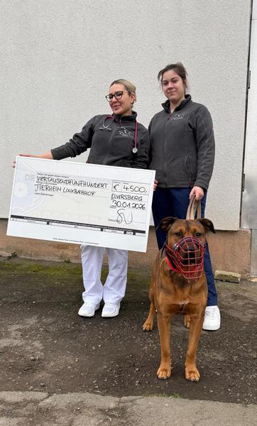 Die Tierklinik Elversberg hat uns heute einen Spendenscheck übergeben – unter den wachsamen Augen unseres Security-Dogs Ulrich.
