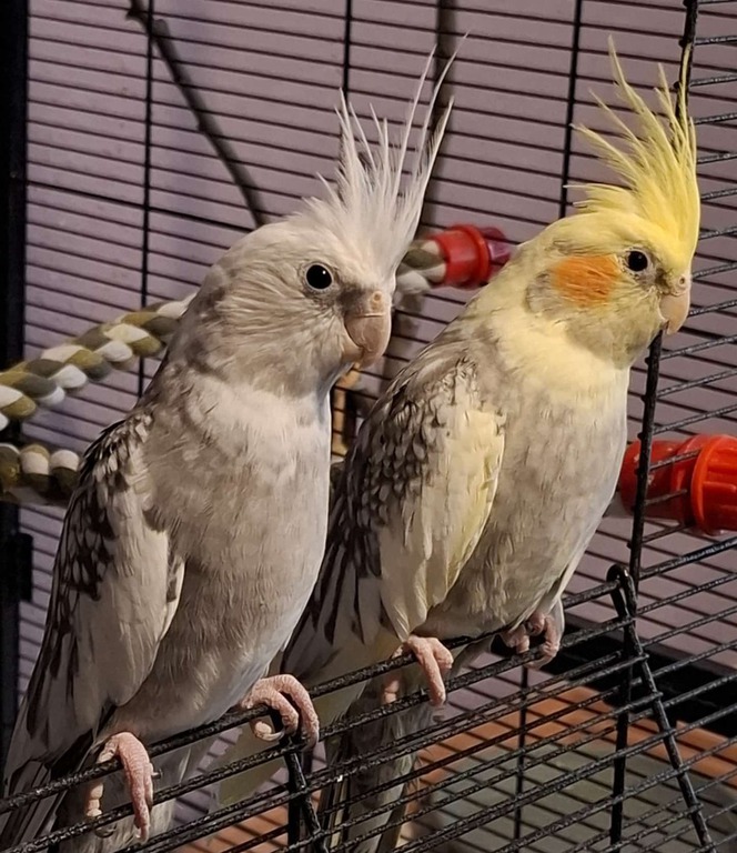 Die beiden Nymphensittiche Dotti (gelb) und Denoso (grau) sind ein Pärchen. Ihr Alter ist uns leider nicht bekannt. Sie suchen ein gemeinsames, liebevolles und erfahrenes Zuhause.